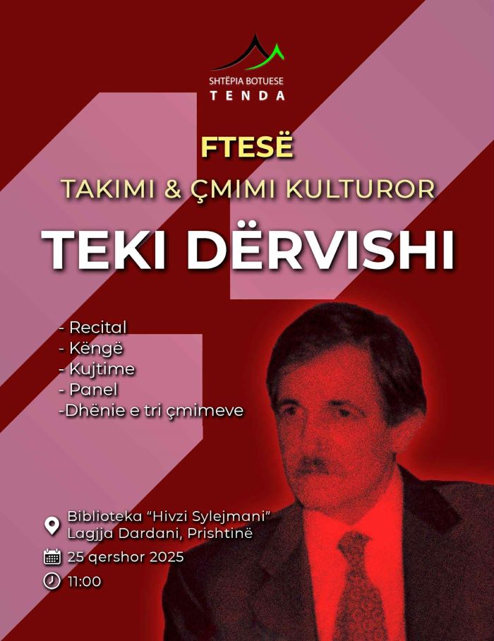 Shtëpia Botuese “TENDA”, vitin e kaluar ka themeluar Takimet dhe Çmimet pёr kulturë, publicistikë dhe gazetari me emrin e shkrimtarit Teki Dërvishi me qëllim të promovimit dhe mbështetjes së kulturës shqiptare.