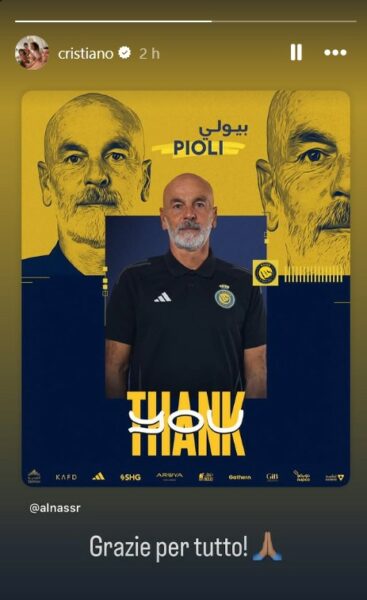 “Faleminderit për gjithçka” dhe një emoji me dy duar të lutjes, i përcjellë me foton e trajnerit italian, respektivisht postimin e Al Nassr.