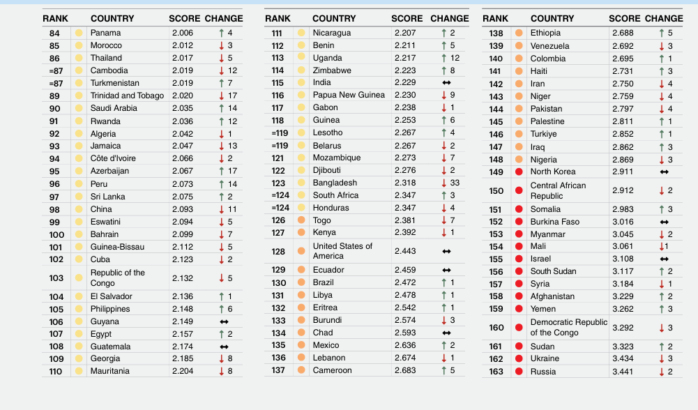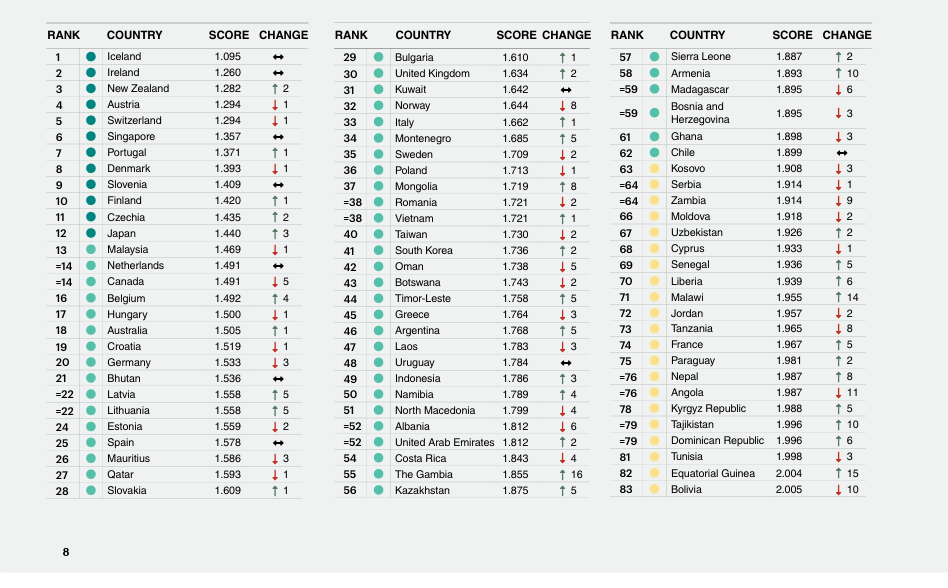 Në raportin e vitit 2024, Kosova kishte shënuar progres prej tre vendesh dhe ishte renditur në pozitën e 56-të.