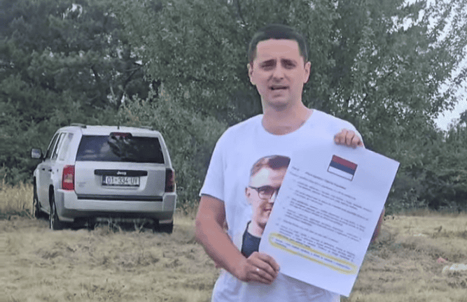 Grupi që ishte i udhëhequr prej tij, kishte të veshur bluza me mesazhe politike “Serbia e Bashkuar”, dhe me ngjyrat kuq, kaltër dhe bardhë.