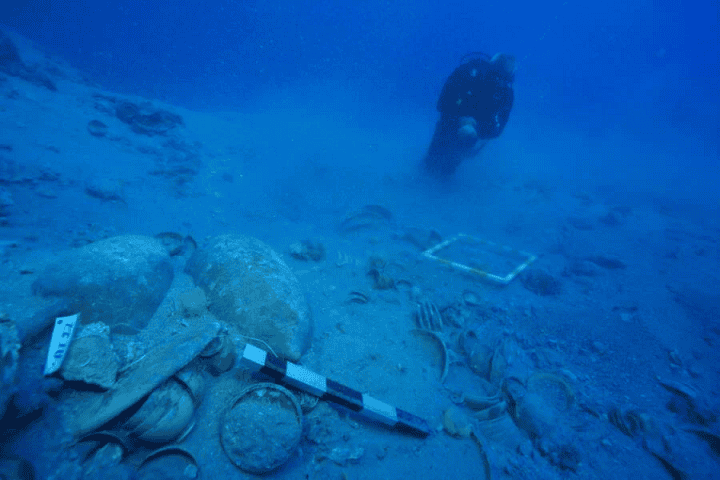 Anija e mbytur u gjet në një thellësi prej 120 deri në 150 metrash dhe është e jashtëzakonshme jo vetëm për ruajtjen e ngarkesës së saj, por edhe për rregullimin e kujdesshëm të qeramikës.