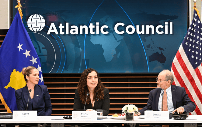Presidentja e Republikës së Kosovës, Vjosa Osmani, ka theksuar rëndësinë e mbështetjes së partnerëve ndërkombëtarë në rrugëtimin e vendit drejt institucioneve euroatlantike. Gjatë vizitës së saj në Washington D.C., Osmani ishte pjesë e një tryeze diskutimi me diplomatë dhe ekspertë të politikës së jashtme.