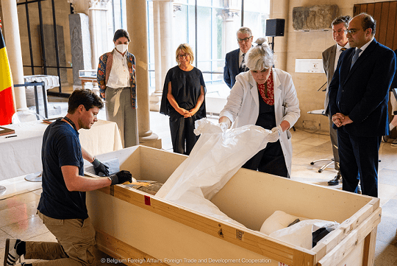 Zyra e prokurorit të Brukselit tha se sarkofagu dhe një objekt më i vogël – një mjekër prej druri – iu dorëzuan ambasadorit egjiptian në një aktivitet të veçantë në kryeqytetin belg.