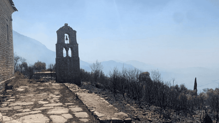 Po ashtu nga flakët është përfshirë edhe kisha e Shën Dhimitrit duke u djegur plotësisht.