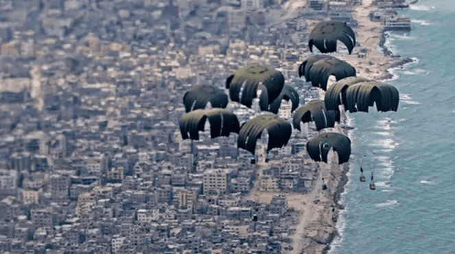 Gaza, e shkatërruar nga lufta, po merr ndihma nga qielli – një zgjidhje e pasaktë, por e domosdoshme.