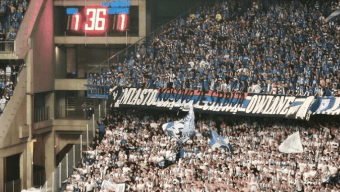 Ekipi serb fitoi në fushë, por ajo çka tërhoqi vëmendjen ishte një baner skandaloz që u shfaq nga tifozët e pranishëm.Tifozët polakë shpalosën banerin “Kosova është Serbi” dhe flamurin serb.