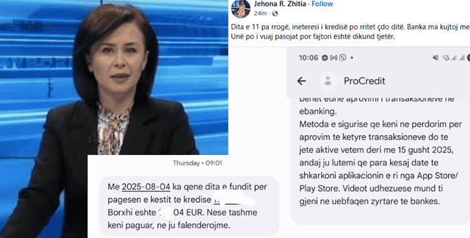 Gazetarja e RTK-së, Jehona Zhitia, ka ndarë në rrjete sociale një mesazh që i ka dërguar banka, duke ia kujtuar pagesën e këstit të kredisë.