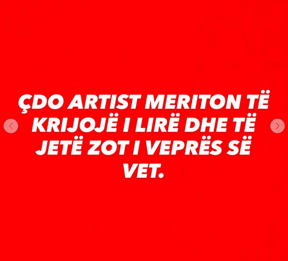 Këngëtari ka shpërndarë në rrjete sociale një mesazh mbështetës me hashtagun #MeGjestin, duke e shoqëruar me fjalët: “Çdo artist meriton të krijojë i lirë dhe të jetë zot i veprës së vet”.
