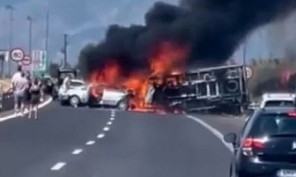 Një ngjarje tragjike ndodhi pasditen e së hënës në autostradën Egnatia të Greqisë, ku një kamion u përplas fillimisht me një tjetër kamion dhe më pas me dy automjete.