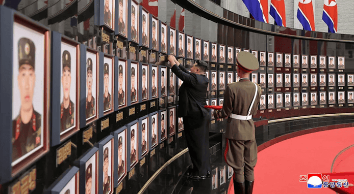 Pamje të publikuara nga agjencia shtetërore KCNA tregojnë liderin e Koresë së Veriut, Kim Jong-un, duke marrë pjesë në një ceremoni zyrtare zie për ushtarët e rënë në luftën e Rusisë kundër Ukrainës.