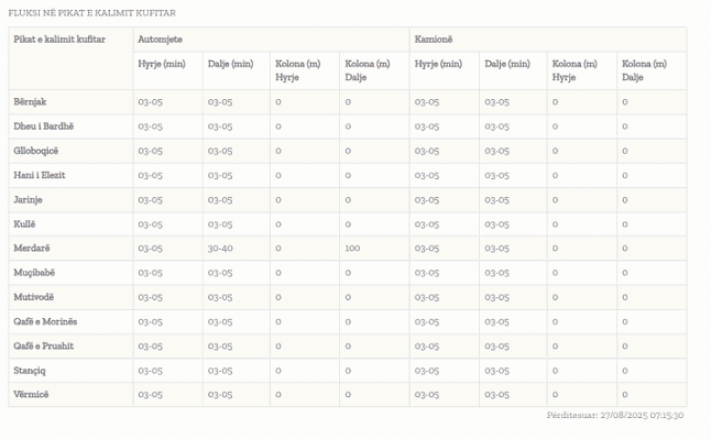 Të dhënat për gjendjen në pikat kufitare janë përditësuar para disa minutash dhe gjendja raportohet të jetë e qetë