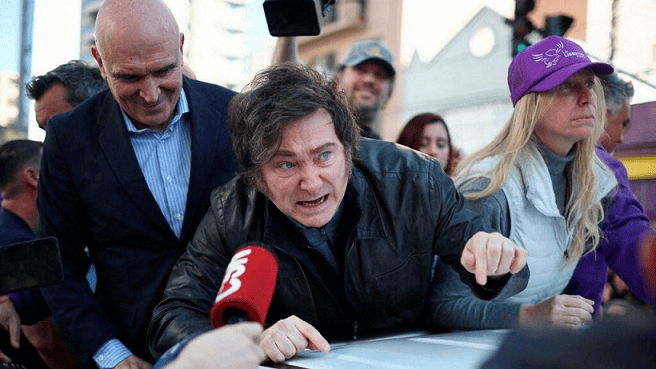 Milei, i cili po bën fushatë për zgjedhjet afatmesme të tetorit, ndodhej në pjesën e pasme të një makine dhe përshëndeste mbështetësit e tij në qytetin Lomas de Zamora, që ndodhet rreth 20 km në jug të Buenos Aires, kur protestuesit nisën papritmas të hidhnin bimë, gurë dhe shishe drejt automjetit të tij.