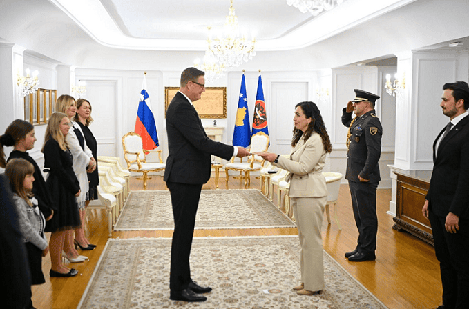 Presidentja e Republikës së Kosovës, Vjosa Osmani, ka pranuar sot letrat kredenciale nga ambasadori i ri i Sllovenisë, Borut Blaj, të cilin e përgëzoi për marrjen e detyrës së re diplomatike në Prishtinë.