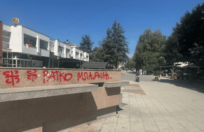 Në zemër të Bujanocit, qytet me shumicë shqiptare, janë shfaqur grafite me emrin e Ratko Mladiqit – gjeneralit serb të dënuar për gjenocidin në Srebrenicë. Përveç emrit të tij, janë vizatuar edhe simbole nacionaliste serbe, duke krijuar një atmosferë të ngarkuar frike dhe pasigurie për komunitetin shqiptar.