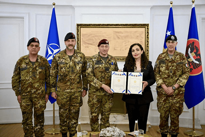 Presidentja e Republikës së Kosovës, Vjosa Osmani, ka nderuar gjeneralmajorin Enrico Barduani me Medaljen Presidenciale Ushtarake, si shenjë falenderimi për kontributin e tij të çmuar gjatë mandatit në krye të misionit të KFOR-it në Kosovë.