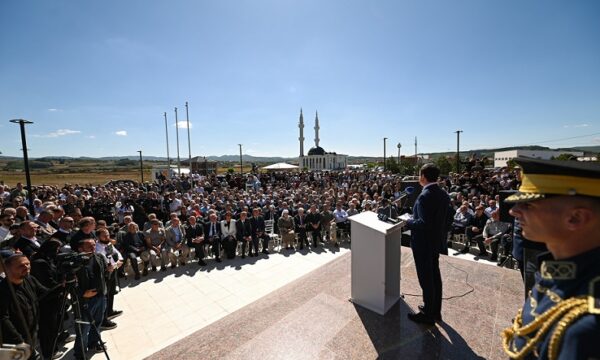 Në fjalën e tij, Kurti përshëndeti të pranishmit në mesin e të cilëve ishte edhe ish-ministri i tij, Liburn Aliu, si dhe rivali i tij politik, kreu i AAK-së, Ramush Haradinaj.