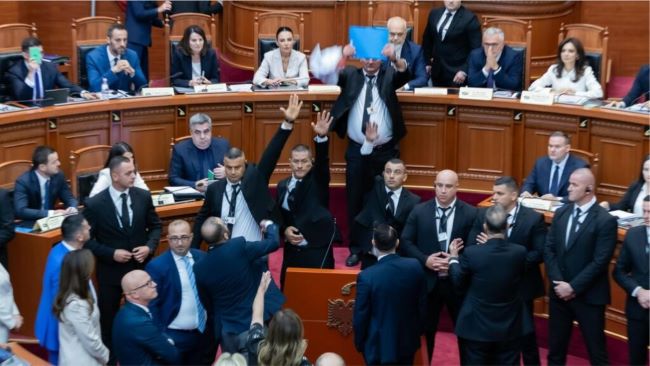Në dokumentin e publikuar nga Klan TV, mazhoranca e konsideron të paprecedentë aktin e goditjes me sende të forta në drejtim të kreut të Kuvendit dhe anëtarëve të Këshillit të Ministrave, duke e cilësuar si një shkelje të rëndë të etikës parlamentare.