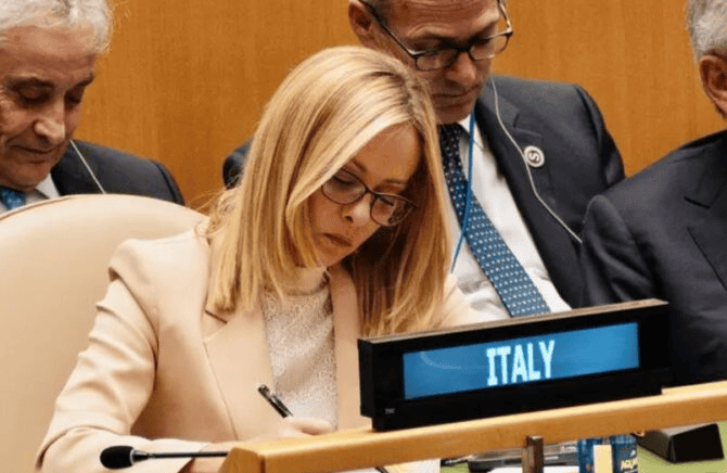 Kryeministrja italiane Giorgia Meloni, në fjalimin në Asamblenë e Përgjithshme të OKB-së, paralajmëroi për rreziqet e thella të një bote gjithnjë e më të paqëndrueshme, duke thënë se “jetojmë në një periudhë historike të përshpejtuar dhe komplekse, plot mundësi, por edhe të mbushur me rreziqe, midis luftës dhe paqes”.