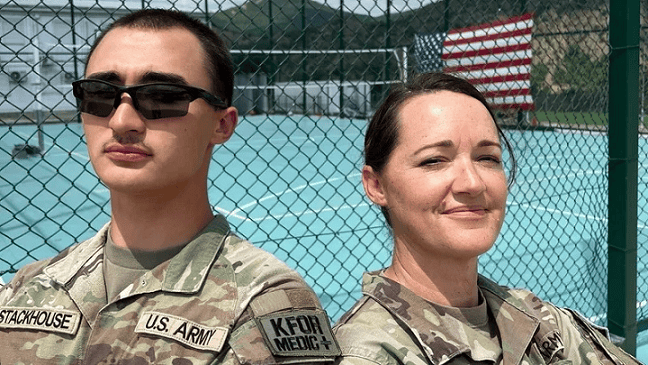 Rreshterja e Klasit të Parë, Tresa Allemang, dhe djali i saj, Kapiten Aiden Stackhouse, të caktuar në Ekipin Luftarak të Brigadës së 256-të të Këmbësorisë, po shërbejnë së bashku në misionin e KFOR-it të udhëhequr nga NATO në Kosovë. Nëna dhe djali kanë mundësinë unike të ndajnë një ëndërr të përbashkët – të shërbejnë krah për krah në të njëjtin mision.