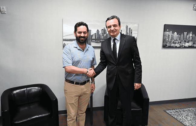 “Në New York të Shteteve të Bashkuara të Amerikës, Kryeministri në detyrë i Republikës së Kosovës, Albin Kurti, takoi kongresistin amerikan nga radhet e Partisë Republikane, Mike Lawler, njëherësh anëtar i Komitetit për Punë të Jashtme në Dhomën e Përfaqësuesve të Shteteve të Bashkuara të Amerikës”.