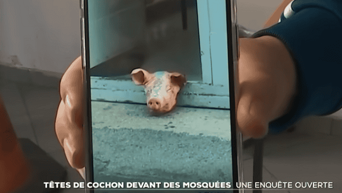 Hetimet e policisë franceze zbuluan se në të paktën shtatë raste, kamerat e sigurisë kanë kapur një burrë me kapuç që vepronte gjatë natës, duke lënë koka derrash të mbështjella me celofan dhe fjongo, me një mesazh të bashkangjitur që thoshte “të bëftë mirë”. Të paktën nëntë koka derrash u gjetën përpara xhamive në rajonin e Parisit në fillim të shtatorit.