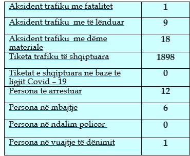 Sipas statistikave të përgjithshme të policisë, gjatë kësaj periudhe janë shqiptuar 1 mijë e 898 gjoba trafiku.