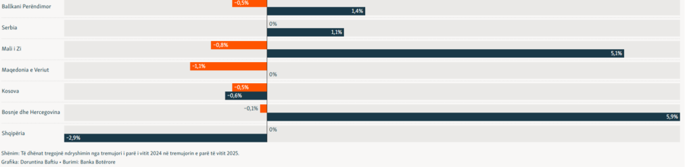 Banka Botërore ka parashikuar rënie të rritjes ekonomike nga 3.6 për qind në 2024-tën në 3 për qind në 2025-tën për shtetet e Ballkanit Perëndimor.
