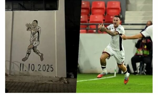 Rey Manaj nderohet me mural në Mitrovicë pas fitores historike ndaj Serbisë