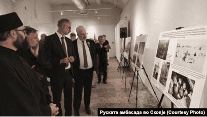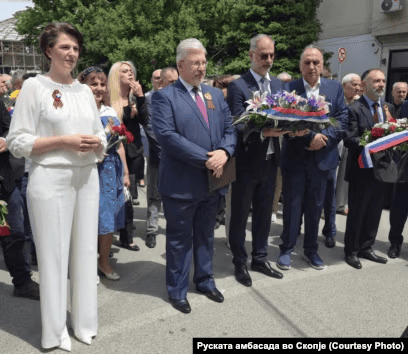 Në Shkup, zëvendëskryeministri Ivan Stoillkoviq, kreu i Partisë Demokratike të Serbëve dhe partner koalicioni i VMRO-DPMNE-së, vendosi lule para monumentit “9 Maji” së bashku me ambasadorin rus në Maqedoninë e Veriut, Sergey Bazdnikin.