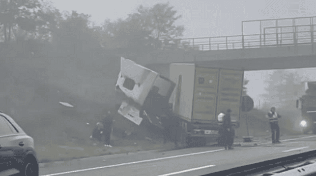 Sipas pamjeve nga Kosovapress, shihet se një kamion ka dalë nga rruga.