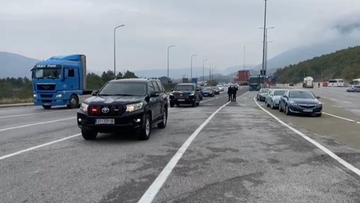 Eskorta e saj është parë duke e kaluar kufirin dhe pamjet janë publikuar në disa media.