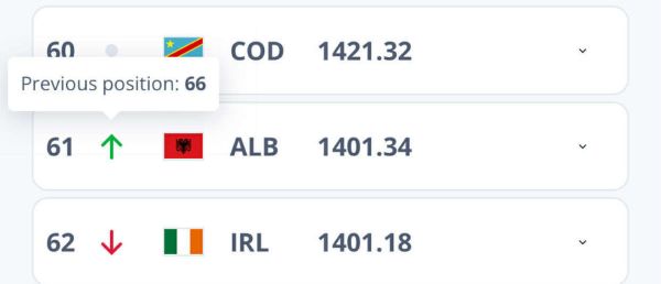 Shqipëria pati përparim për pesë pozita, pas performancës gjatë këtij muaji.