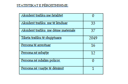 Sipas raportit 24-orësh të publikuar nga Policia, janë regjistruar gjithsej 70 aksidente trafiku, prej të cilave 37 me dëme materiale, ndërsa 33 të tjera me të lënduar.