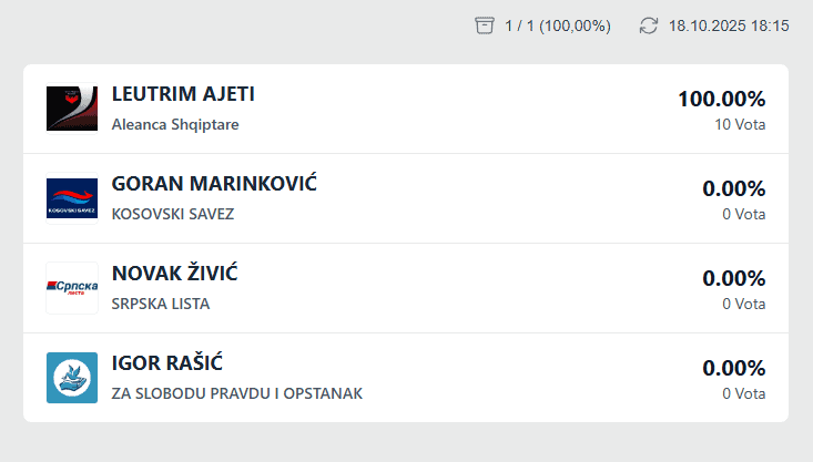 Partitë tjera serbe, përfshirë edhe “Srpska Lista”, s’kanë marrë asnjë votë.