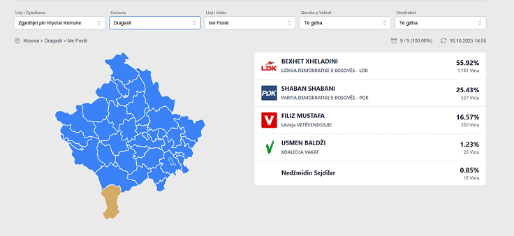 Në këtë komunë bindshëm votat e diasporës i ka fituar kandidati i LDK-së, Behxhet Xheladini me 55.92%, shkruan Reporteri.net.