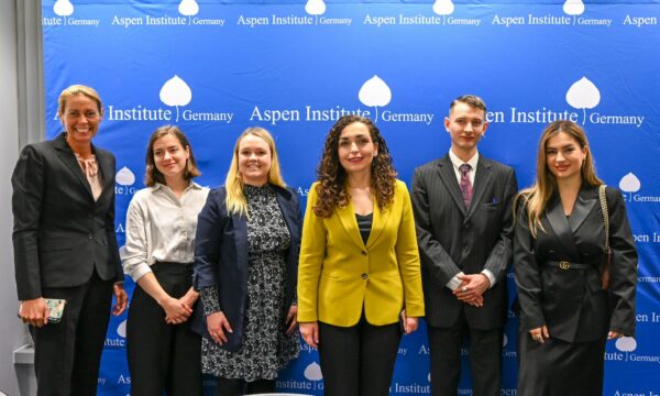Presidentja e vendit, Vjosa Osmani, ka njoftuar se në Berlin, në ‘’Aspen Institute’’, ku ka mbajtur ligjëratë, ka folur për Kosovën si një shtet që ‘’në vetë thelbin e ndërtimit të së ardhmes, ka përqafuar reformën dhe zbatimin e saj si rrugën e vetme drejt zhvillimit dhe konsolidimit demokratik.’’