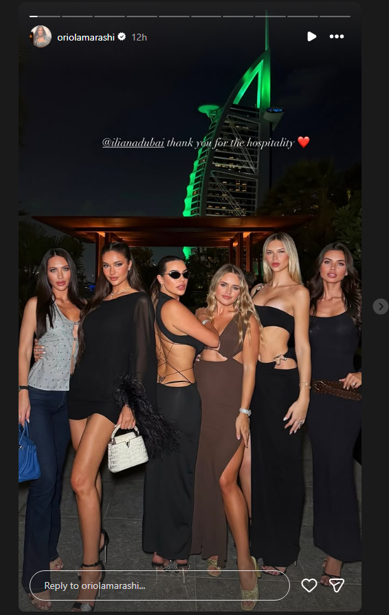 Fotot dhe videot e publikuara në rrjetet sociale tregojnë Oriolën e relaksuar, teksa shijon ambientet luksoze të hoteleve dhe plazheve.