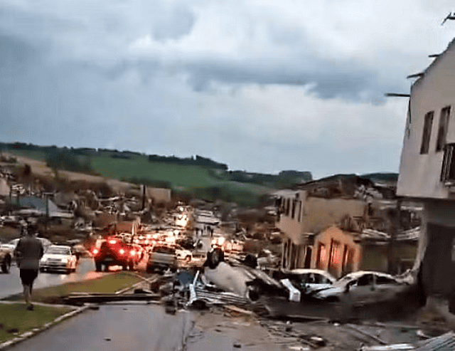 A likely intense to violent tornado struck the city of Rio Bonito do Iguaçu in Paraná, Brazil, causing severe damage to buildings and trees and destroying numerous structures. Damage suggests this tornado may have reached EF4 intensity. pic.twitter.com/TIwIWzaiVD