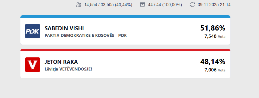 Kaçanikun e fitoi Sabedin Vishi i PDK-së me 51,86%
