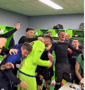 E pas ndeshjes filloj festa e çmendur si nga tifozët jasht stadiumit ashtu edhe nga vet lojtarët e përfaqësueses së Kosovës, të cilën e ka shfaqur nëpërmjet një videoje Federata e Futbollit të Kosovës