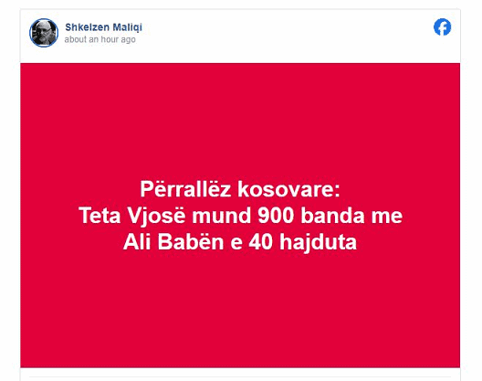 “Përrallëz kosovare: Teta Vjosë mund 900 banda me Ali Babën e 40 hajduta”, ka shkruar Maliqi.