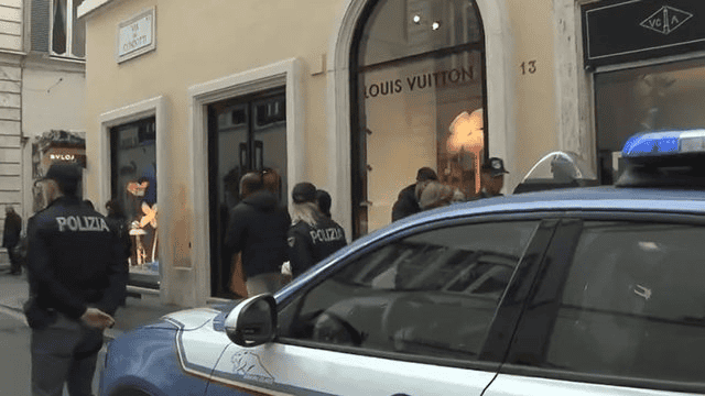 Një grabitje ndodhi në orët e para të së hënës (17/11) në magazinën Louis Vuitton në qendër të Romës , në kryqëzimin e rrugëve Mario dei Fiori dhe Condotti.