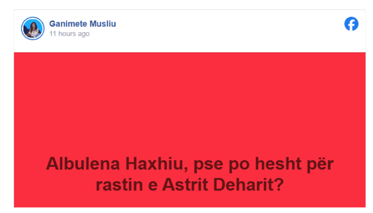 “Albulena Haxhiu, pse po hesht për rastin e Astrit Deharit”, ka shkruar ajo.