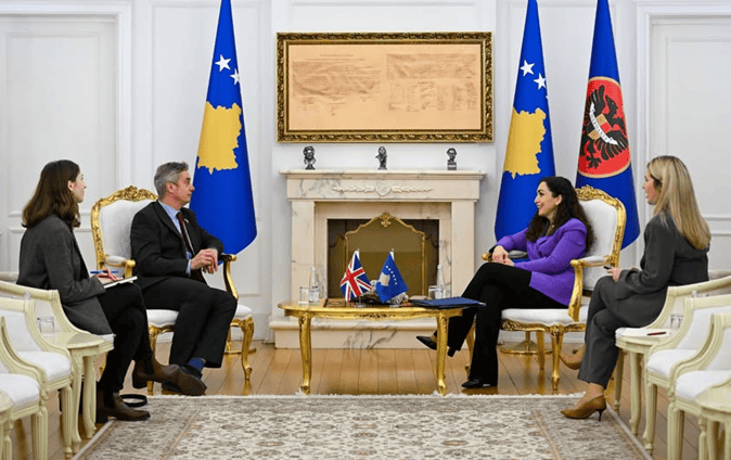 Presidentja e Republikës së Kosovës, Vjosa Osmani, ka pritur sot në takim Ambasadorin e Mbretërisë së Bashkuar në Kosovë, Jonathan Hargreaves, me të cilin ka diskutuar për zhvillimet e fundit politike në vend dhe procesin e zgjedhjeve të parakohshme.