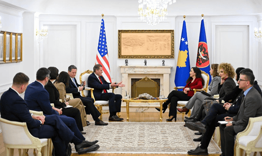 Presidentja e Kosovës, Vjosa Osmani, ka pritur sot në takim kongresistët amerikanë Michael Turner dhe Donald Norcross, me të cilët ka diskutuar zhvillimet e fundit në vend, sfidat e sigurisë dhe forcimin e mëtejmë të partneritetit strategjik ndërmjet Kosovës dhe Shteteve të Bashkuara.