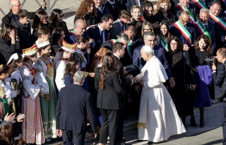 Ministri i Turizmit, Kulturës dhe Mjedisit, Blendi Gonxhja mori pjesë në Dëgjesën Jubilare të papa Leone XIV, në sheshin e Shën Pjetrit, në Vatikan.