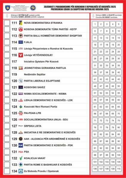 Kështu do të duket fletëvotimi për zgjedhjet e parakohshme të 28 dhjetorit në Kosovë