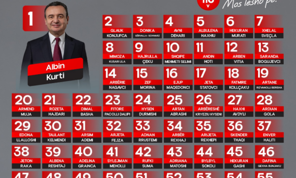 Ajo që bie në sy, është se në listë, vetëm Albin Kurti figuron me fotografi kurse të tjerët janë vetëm ‘emra dhe numra’.