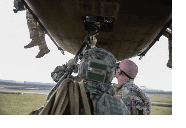 Ushtarë nga Lituania, Danimarka, Turqia, Finlanda dhe Gjermania, së bashku me personelin e Aviacionit të Ushtrisë së SHBA-së të caktuar në Komandën Rajonale Lindore të misionit KFOR të udhëhequr nga NATO, zhvilluan stërvitje për transportin me litar (sling load) në Kampin Novo Selo.