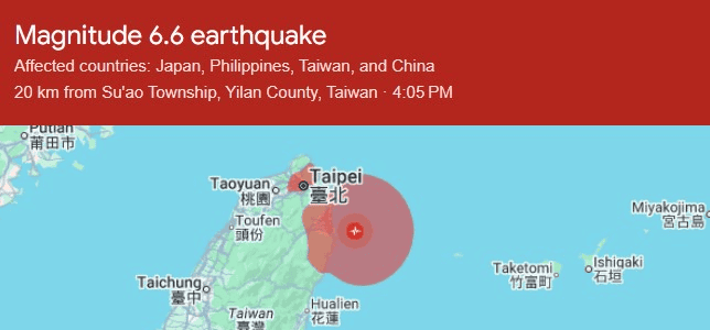 Sipas Administratës Qendrore të Motit (CWA), lëkundjet u ndien në të gjithë ishullin, me intensitet të lartë në qytete kryesore si Taipei, New Taipei, Taichung, Taoyuan dhe Tainan. Edhe shtetet përreth si Kinë, Japoni e Filipine u prekën nga lëkundjet tektonike.